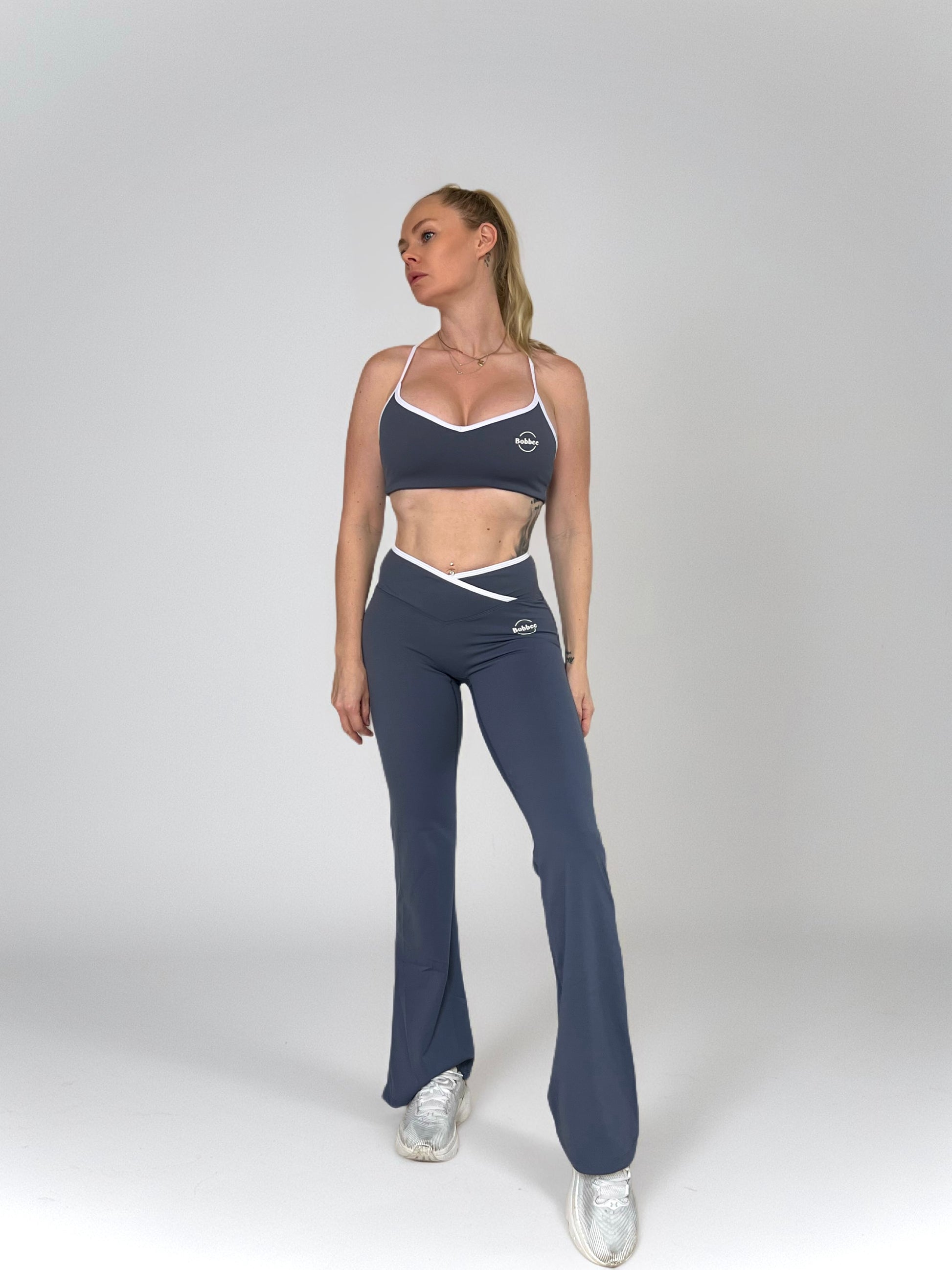This stunning set pairs flared leggings with a supportive sports bra, detailed with crisp white lining that adds a fresh, chic contrast. The subtle design elevates your gym look into something effortlessly graceful, perfect for workouts, coffee runs, or wherever your day takes you.